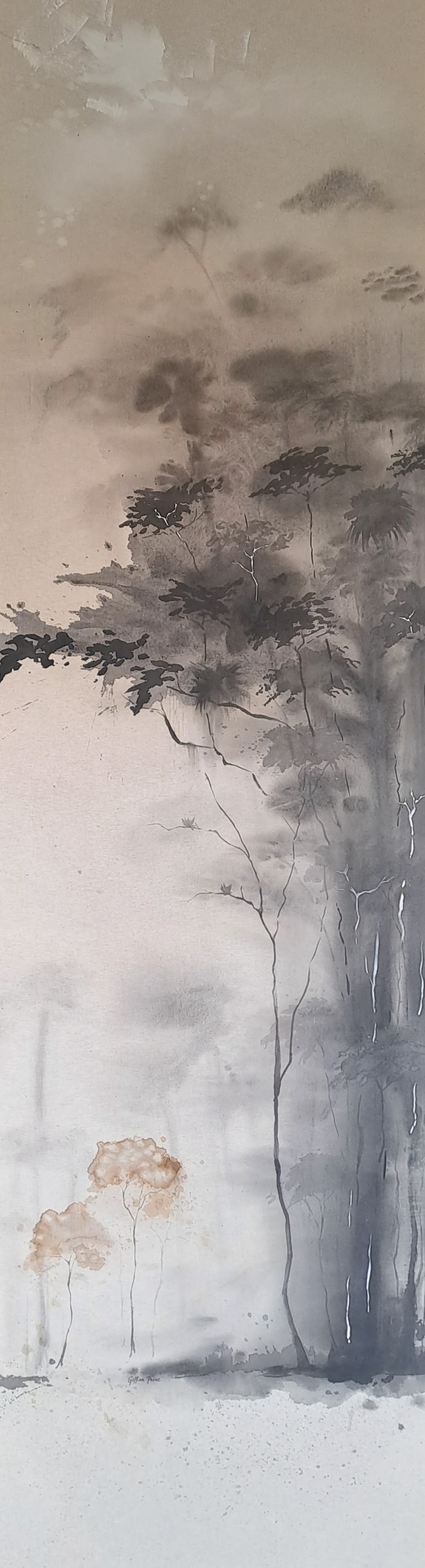 Acrílico y café sobre lienzo crudo